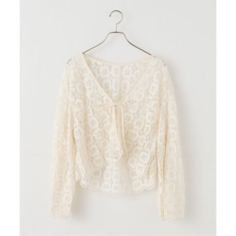 ヴィンテージライクな幾何学模様のレースを使用した春にぴったりなカーディガン。