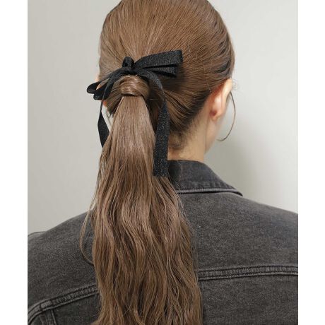 さり気なく煌めくラメ素材のリボンが、うしろ姿を可憐な雰囲気に導くヘアゴム。シックなカラーが甘さを抑え、大人っぽく仕上げます。※ATTENTION※■微細なキズや製造ムラはすべての商品に含まれます。[型番:DG640094H]