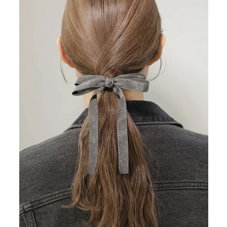 さり気なく煌めくラメ素材のリボンが、うしろ姿を可憐な雰囲気に導くヘアゴム。