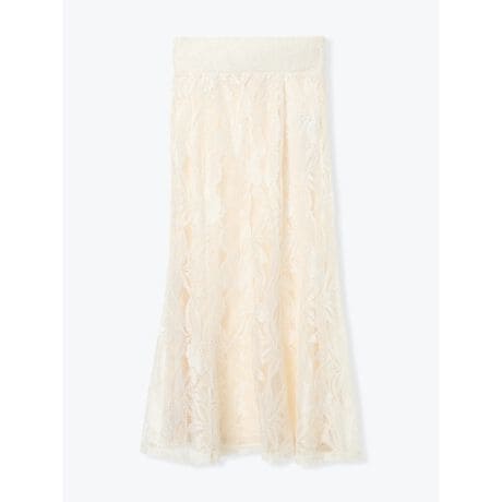 [型番:26560773649]繊細なレース素材を贅沢に使用し、上品な透け感が魅力のマーメイドスカート。ウエストまわりはすっきりと、裾に向かって広がるシルエットが女性らしいラインを引き立てます。シンプルなトップス合わせでも華やかさがあり、きれいめからカジュアルまで幅広く活躍する一枚です。モデル(黒着用)身長:160cmMサイズ着用