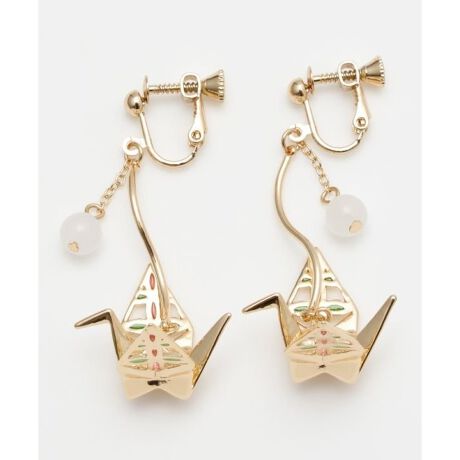 [型番:7CNZ6102-2026]立体的な折り鶴モチーフが印象的なイヤリング。羽には七宝柄風の透かし模様が施され、繊細なきらめきが耳もとを上品に彩ります。優美で存在感のあるアクセサリーです。
