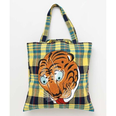 [型番:7CRP6108-2026]日本美術の名作をモチーフにした、相良刺しゅう仕立ての2WAYバッグ。デザインはNEKO「猫のすずみ」一勇斉国芳(歌川国芳)/TORA「虎図」伊藤若冲/USAGI「月百姿 孫悟空 玉兎」月岡芳年。チェック柄の生地と伝統絵柄が調和した、和モダンなアートバッグです。