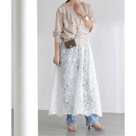 ペチコートは取り外し可能なので、レーススカートとデニムなどを合わせた旬なレイヤードコーデもおすすめ◎