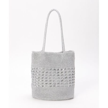 ラメを編み込んだ雑材メッシュ素材が、軽やかで華やかな印象のトートバッグ。