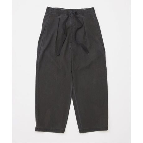 麻調素材「EVALET(エバレット)」にピグメント加工を施し、さらに洗いをかけることで、独特のシボ感とフェード感を表現した新素材を使用したオーバーパンツ。