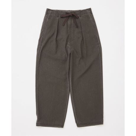 麻調素材「EVALET(エバレット)」にピグメント加工を施し、さらに洗いをかけることで、独特のシボ感とフェード感を表現した新素材を使用したオーバーパンツ。