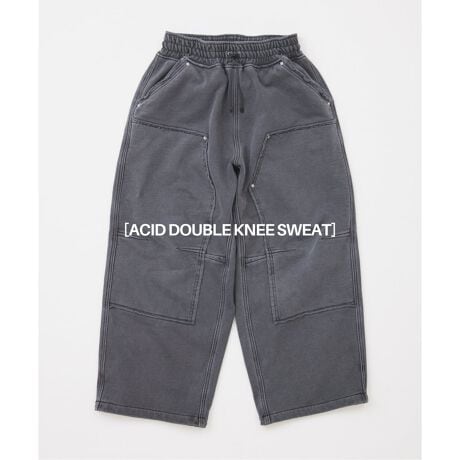 リベット付きのダブルニーパーツを採用し、パーツ端には断ち切り仕様を施すことで、無骨でインパクトのある表情に仕上げています。ワーク由来のタフな意匠と、裏毛素材ならではのリラックス感のコントラストが、このモデルならではの魅力です。