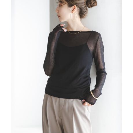女性らしい上品さとラフさを融合させたような絶妙なニュアンス感が魅力のシアーニット。
