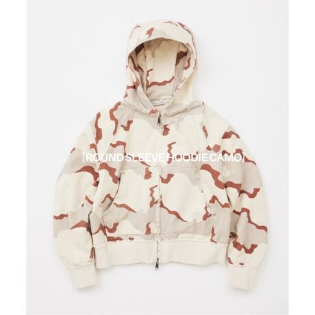 ミリタリージャケットのフォルムをベースに、袖を前振りに設計することで、ブルゾンのような立体的なシルエットを構築。ギャザーを入れたカーブラインが、動きのある表情と丸みのあるフォルムを生み出します。