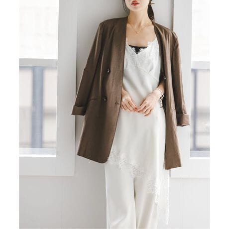 裾のデザインを活かして上からプルオーバーやアウターを着用すればまるで腰にスカーフを巻いているようなイメージで着用できつつ、キャミソール型なので難しいテクニックいらずで簡単にレイヤードスタイルを楽しめます。