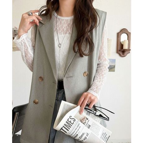 軽やかに羽織れるダブルジャケットジレベスト。