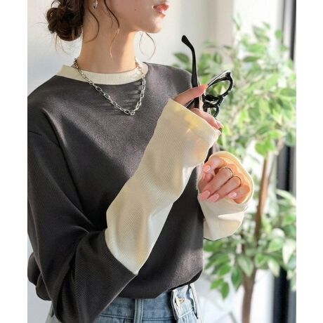 一枚でレイヤード見えが叶う、袖配色切り替えテレコリブニット。