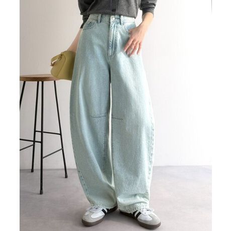 ウエストから膝に向かって緩やかなカーブラインを描き、膝下はすっきりと整えたバレルレッグデニム。