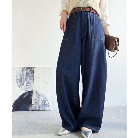 ベイカーポケットをアクセントにした、裾に向かって丸みを持たせたバルーンシルエットのデニムパンツ。