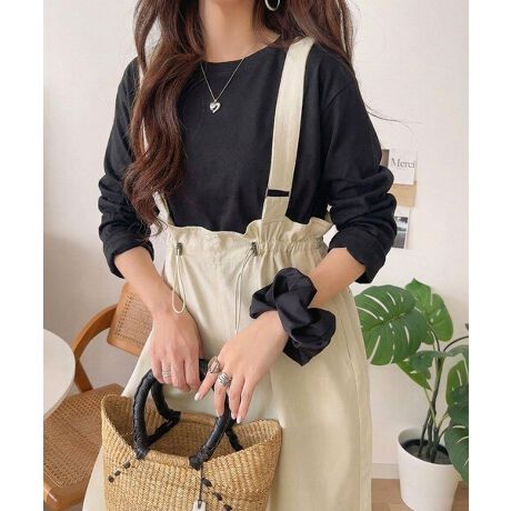 一般的なデニムオーバーオールよりもすっきりとした印象で、大人っぽく着用できる一枚。