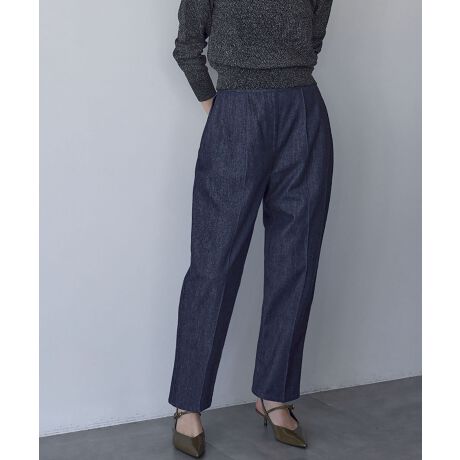 ハイウエスト ピンタック テーパードデニム テーパードパンツ【洗える】