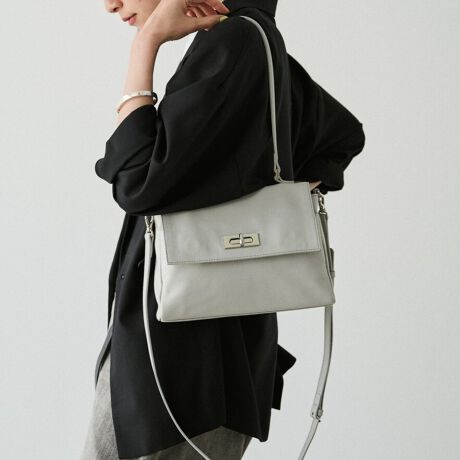 ひねり金具がきらりと光る、上品な佇まいのフラップミニトート。