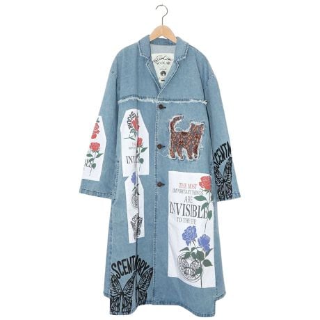 お花や蝶々のアップリケの他にも、背中には存在感抜群のつぎはぎネコちゃんアップリケ、