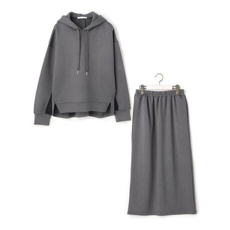 異素材使いの切り替えデザインがおしゃれに決まる大人リラクシーなセットアップです。