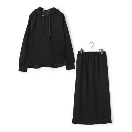 異素材使いの切り替えデザインがおしゃれに決まる大人リラクシーなセットアップです。