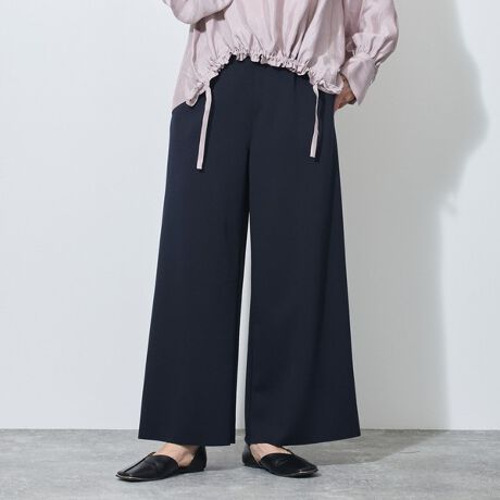 薄手のダンボールニットを使用した一重仕立てのワイドパンツ