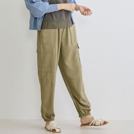カジュアルなイメージのカーゴパンツは、ヴィンテージサテンを使用し大人なパンツに仕上がりました。トロミと光沢感のある素材感がワンランク上の上品な印象を演出してくれます。