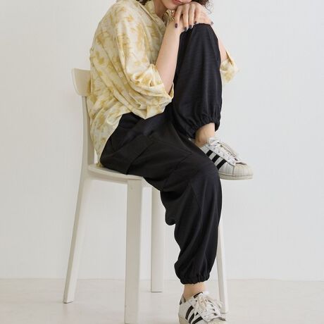 カジュアルなイメージのカーゴパンツは、ヴィンテージサテンを使用し大人なパンツに仕上がりました。トロミと光沢感のある素材感がワンランク上の上品な印象を演出してくれます。