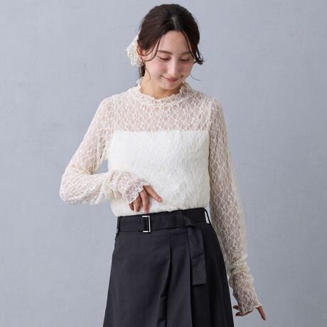 程よい透け感のレース素材でインナーを気にせず着られるようベアトップ付きの為一枚でも着用可能◎