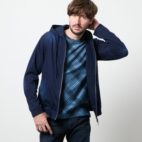 一重のジップアップパーカー。細腹をとり、袖も2枚接ぎにする事で普通のパーカーとは一線を画す綺麗なシルエットに仕上げています。切替を活かしたシームポケットはスッキリしたデザインで、左裾にブランドロゴの同色刺繍を入れています。フロントの逆開ファスナーや、フードを2重にする事で立ちが良く小顔見え効果も図っています。春から初夏に向けてTシャツの上に羽織るのに丁度よい肉厚感とサイズ感で、上にアウターを着用しても着ぶくれしないスッキリしたシルエットです。