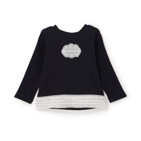 胸元のワッペンが可愛いアクセントになった長袖Tシャツです。大胆な裾のレースデザインで女の子らしい上品さを添えています。幅広いシーンで活躍するシンプルなカラーリング。スカートと合わせたガーリーコーデにも、パンツでカジュアルダウンした着こなしにもマッチします。内側にお名前を記入できるタグつき。オーガニックコットンを20%使用しています。