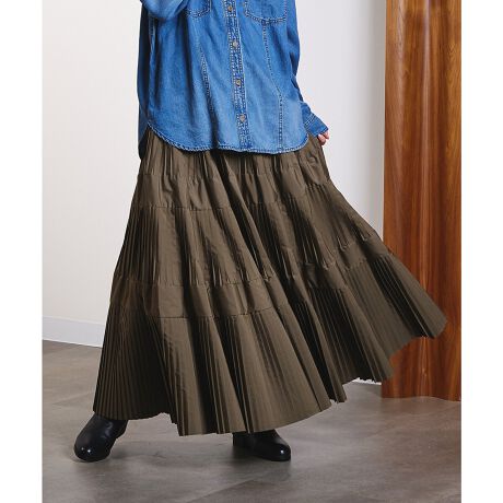 動くたびに揺れるプリーツティアードが女性らしく、コーディネートの主役になるスカートです。