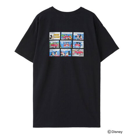 ・背中にコミック風のミッキー&フレンズのプリントを大胆にあしらった、遊び心あふれる1枚