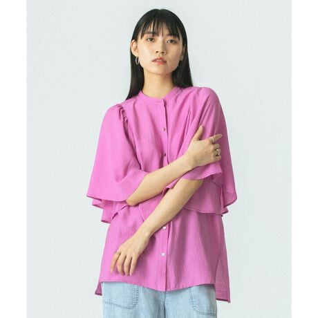 さらりと涼しく着られる、フレアスリーブが映えるデザインブラウス
