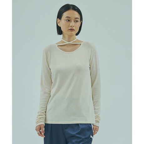 チョーカー風デザインと前後2WAY仕様が魅力のリブトップス