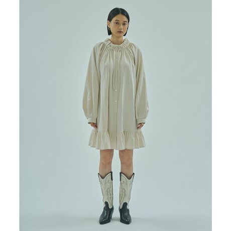 ・襟元と裾にたっぷりとフリルをあしらったフェミニンなデザイン