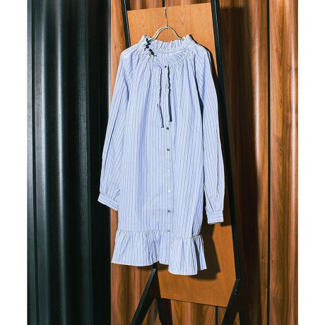 ・襟元と裾にたっぷりとフリルをあしらったフェミニンなデザイン