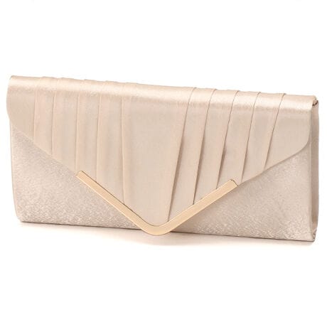 凛とした美しさを添える。V字メタルが際立つ大人サテンクラッチ。