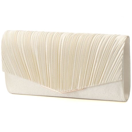 結婚式やお呼ばれシーンに、圧倒的な気品を添える「サテンプリーツ」のクラッチバッグです。