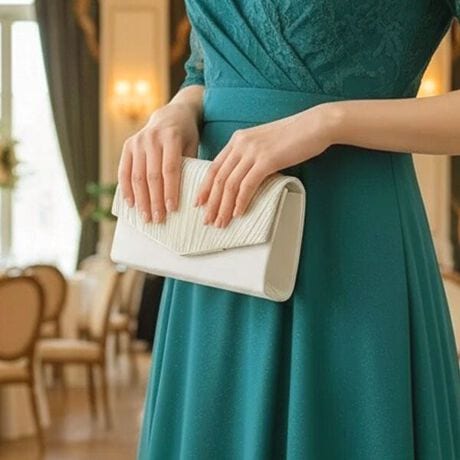 贅沢なミニデザイン: 従来のクラッチよりも一回り小さく設計。手に持った時の収まりが良く、ドレスのシルエットを崩さず、全身を華奢に、スタイル良く見せてくれます。
