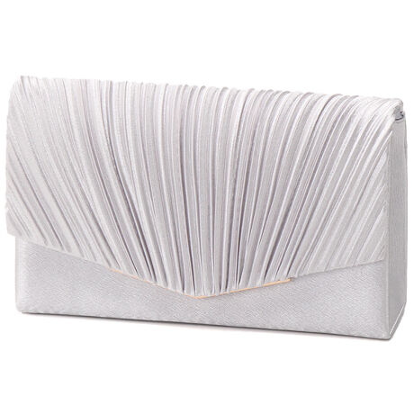 立体プリーツ×Vメタルの対比: 柔らかなサテンプリーツの陰影と、フラップを飾るシャープなVメタル。相反する要素が組み合わさることで、奥行きのある高級感が生まれます。