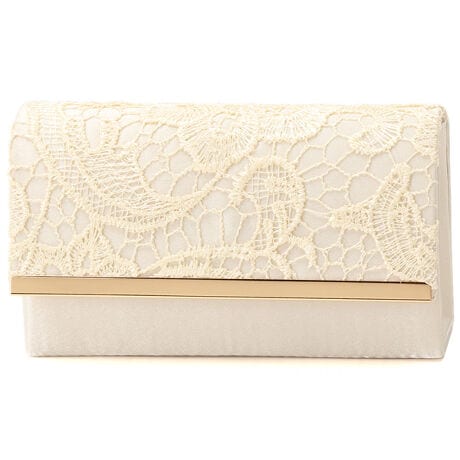 サテンの上に繊細なレースをレイヤードした、奥行きのある美しさが魅力のミニクラッチバッグです。
