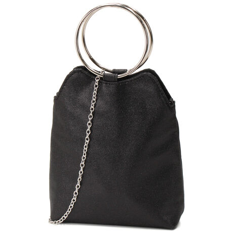 定番のクラッチとは一線を画す、遊び心たっぷりのリングハンドルポーチ。手元に添えるだけで、パーティースタイルをぐっと今っぽくアップデートします。