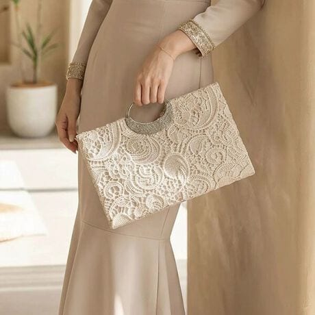 凛とした佇まいに、レースの華やぎを。洗練を極めたスクエア型パーティーバッグ。