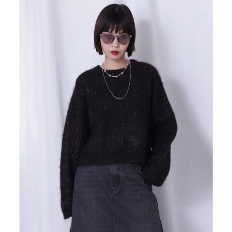 起毛がかった暖かみのある柔らかい風合いのニットプルオーバー。
