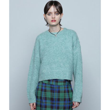 起毛がかった暖かみのある柔らかい風合いのニットプルオーバー。