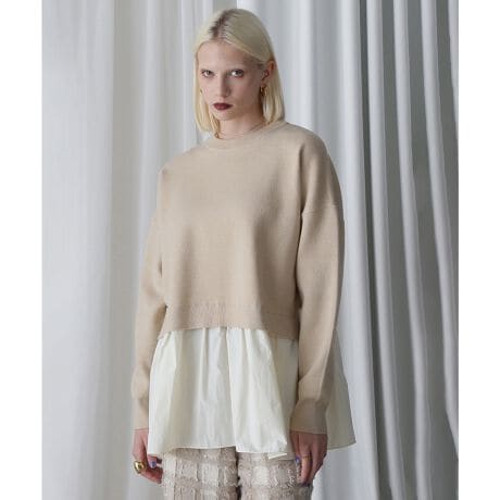ニットと布帛をドッキングさせたペプラムデザインニットです。