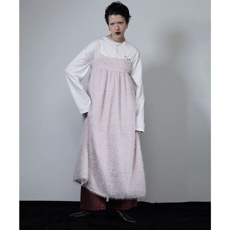 柔らかな質感が女性らしく優しい印象のシャギーキャミワンピース