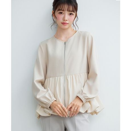 袖山・袖口はギャザー仕様です。ギャザーを取り入れることで女性らしいボリュームをつくります。