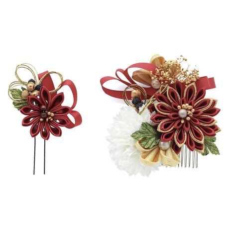 大きな髪飾りの留め具はコーム(櫛)式、小さな髪飾りはUピン式ですので、着物に合わせ自由な組み合わせでご使用いただけます。