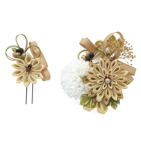 大きな髪飾りの留め具はコーム(櫛)式、小さな髪飾りはUピン式ですので、着物に合わせ自由な組み合わせでご使用いただけます。